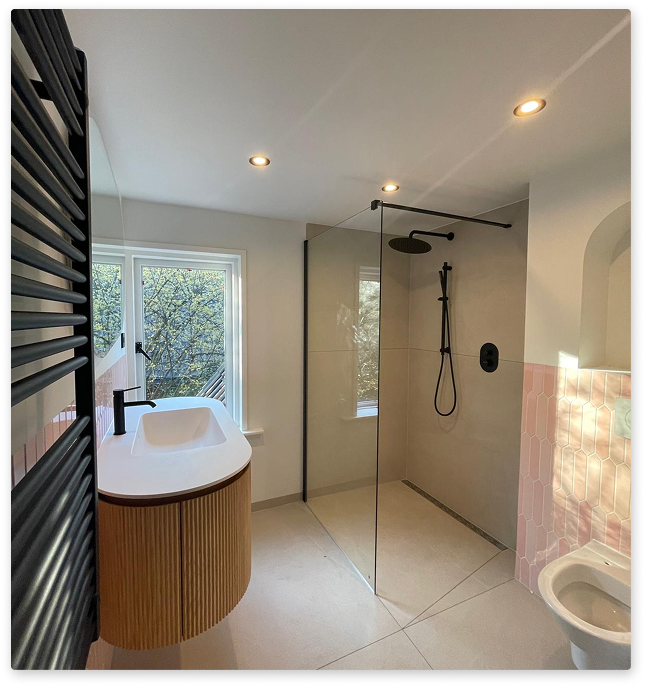 Bij elk project luisteren wij aandachtig naar uw wensen. Ons doel is om een badkamer of sanitaire ruimte te creëren die perfect aansluit bij uw stijl, comfort en verwachtingen — volledig op maat en met zorg voor elk detail.